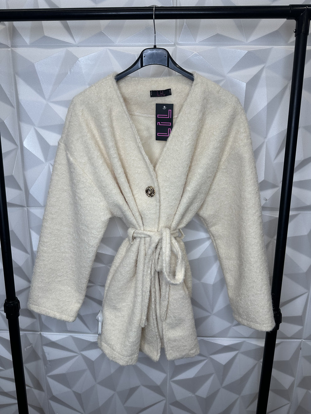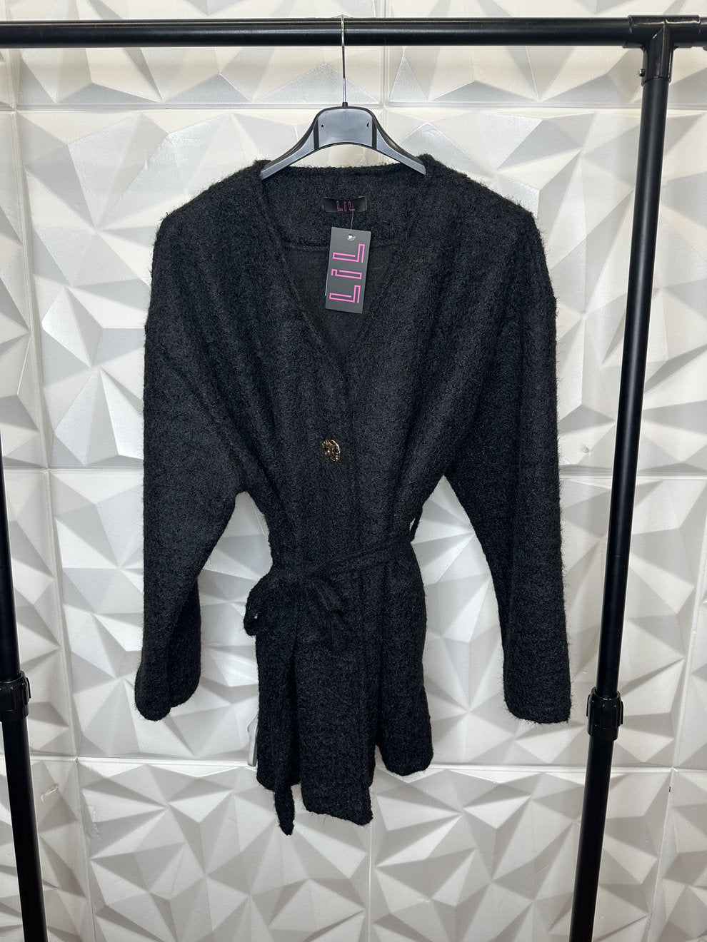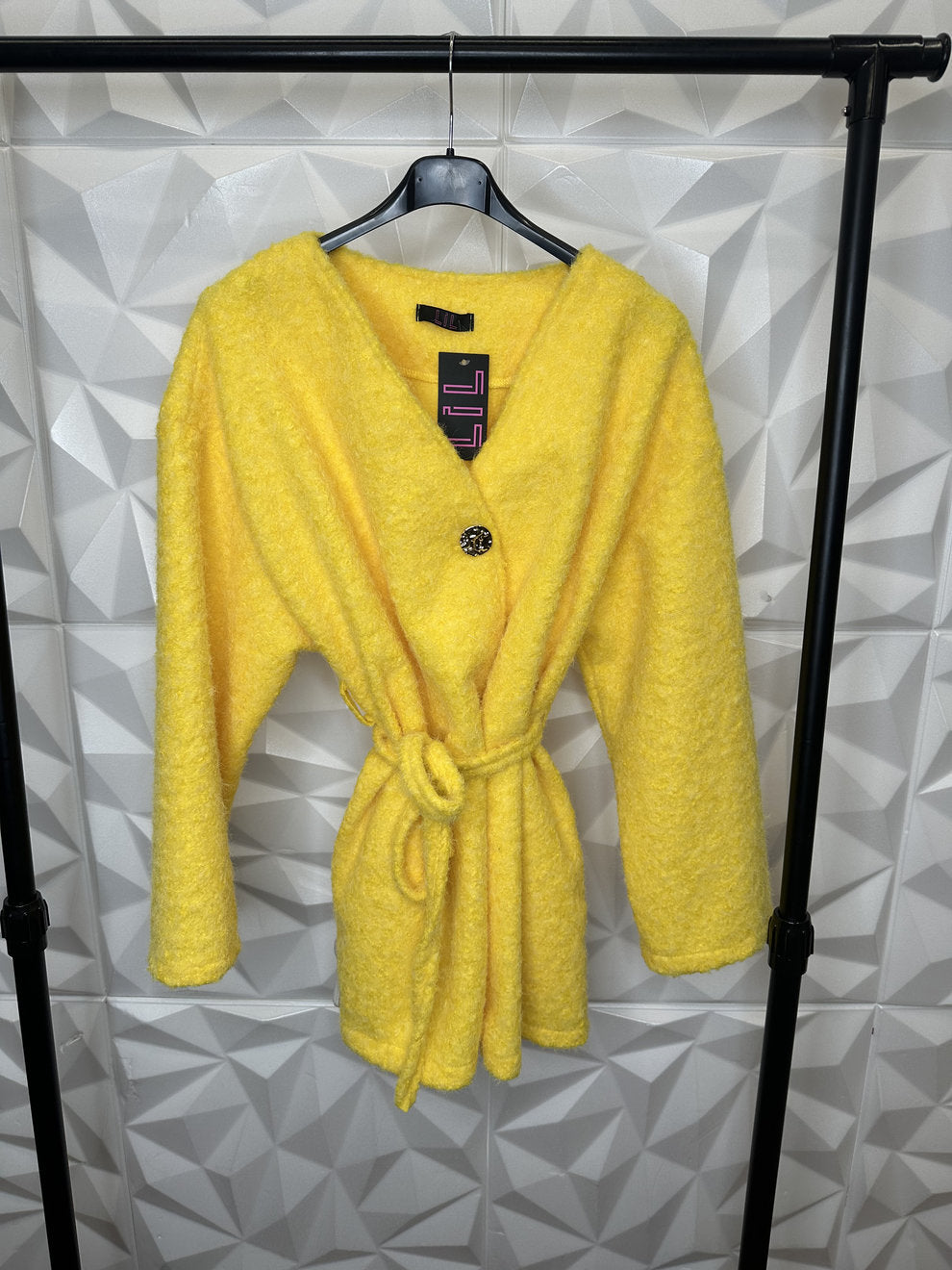 Schicker kurzer Fellcardigan mit Band und goldenem Knopf