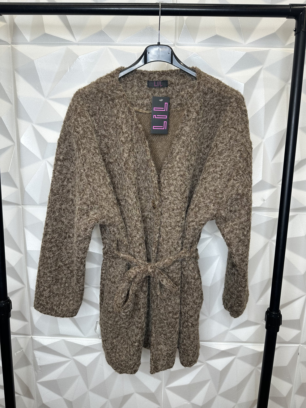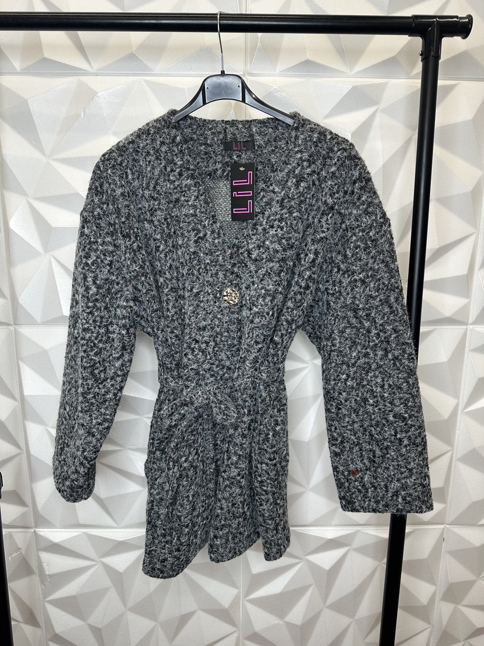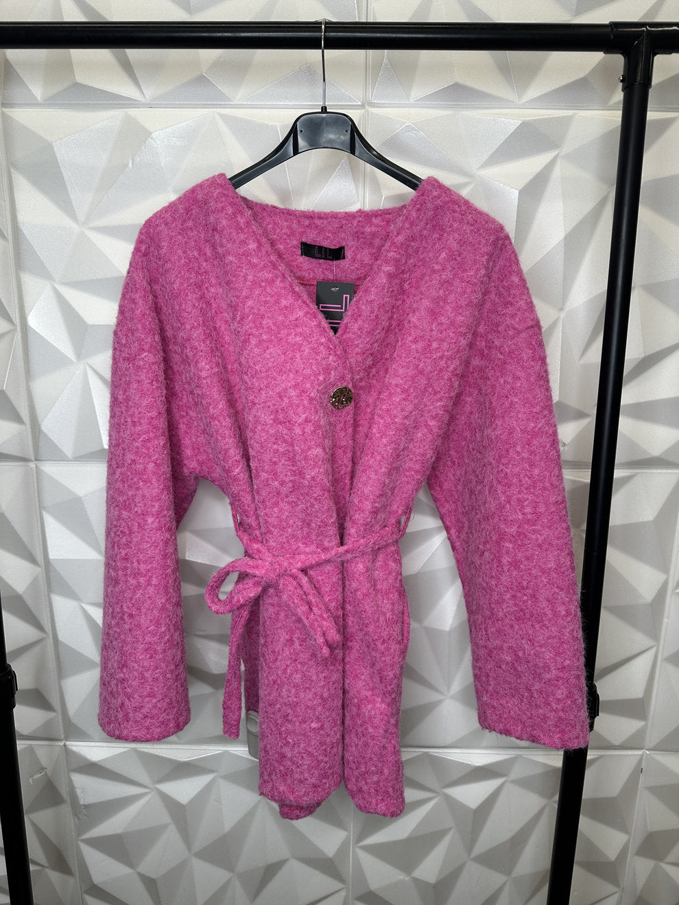 Schicker kurzer Fellcardigan mit Band und goldenem Knopf